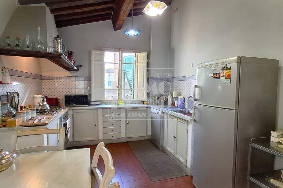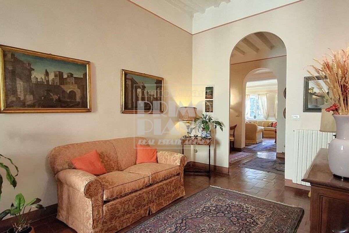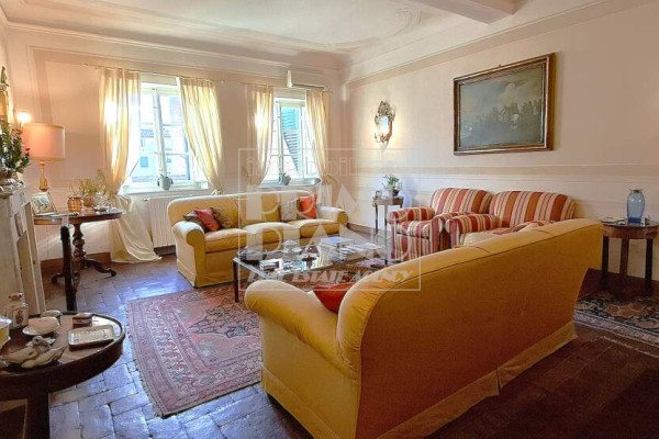 Just steps away from the beautiful Piazza dell'Anfiteatro, in the authentic heart of the historic center of Lucca, we are pleased to present this refined and exceptionally bright apartment of generous dimensions, set within a charming historic building featuring an elegant entrance hall.