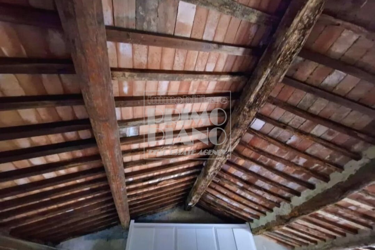 Il tetto è in buono stato; i pavimenti sono in mezzane di cotto e i soffitti caratterizzati da travi e travicelli in legno con mezzane.