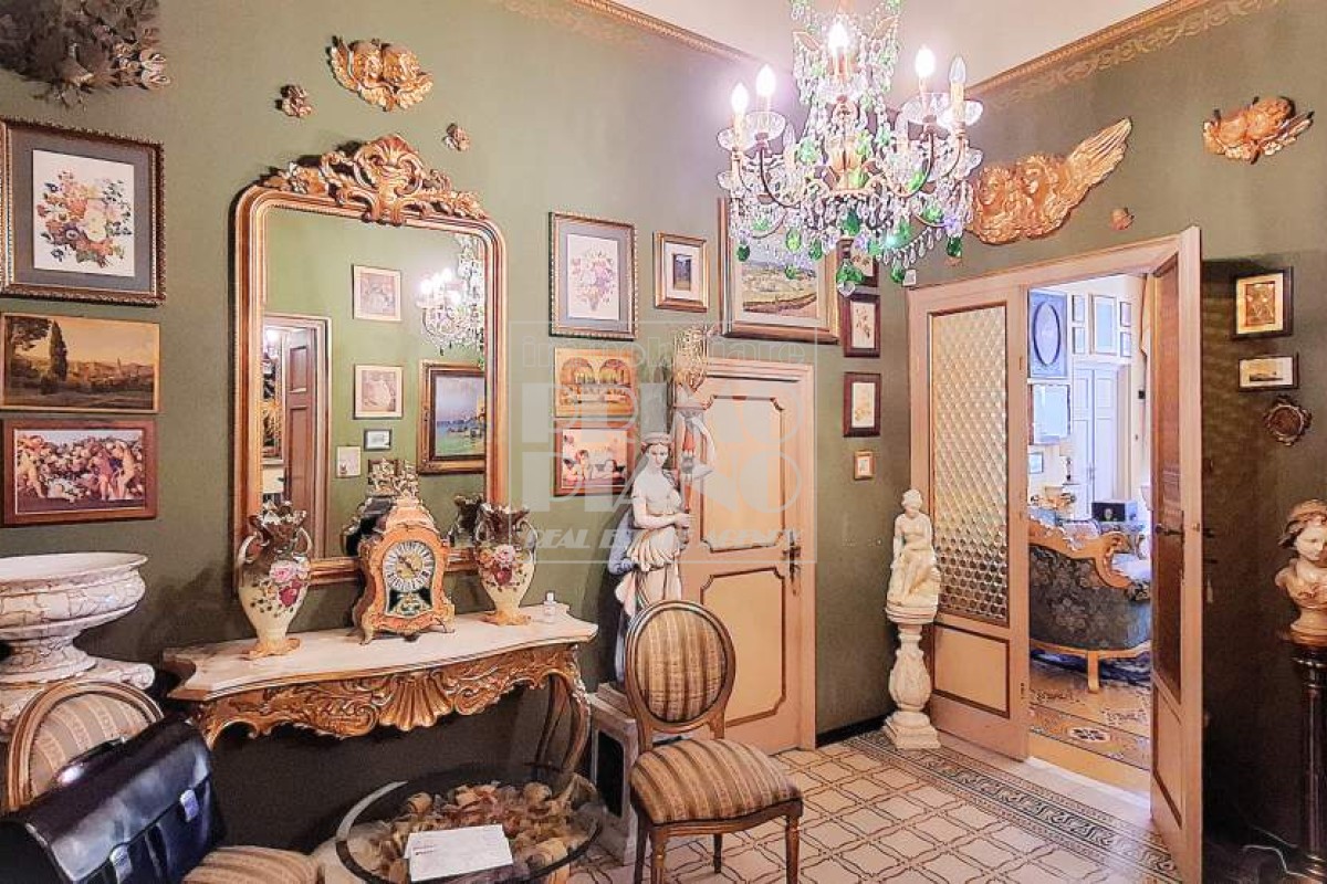 Gli ambienti sono impreziositi da soffitti alti 3,80 metri, decorati con affreschi e stucchi d’epoca, che conferiscono una rara eleganza storica a tutta la proprietà. Il riscaldamento è autonomo a gas metano, con termosifoni.