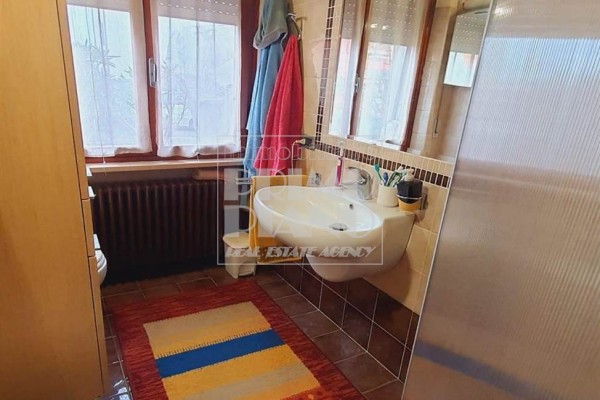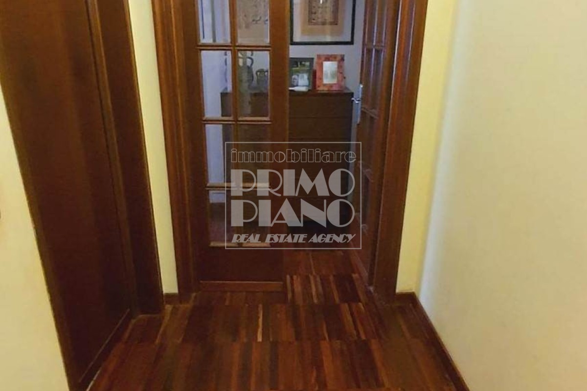 parquet (ad eccezione dei bagni), infissi in legno con doppi vetri e serrande