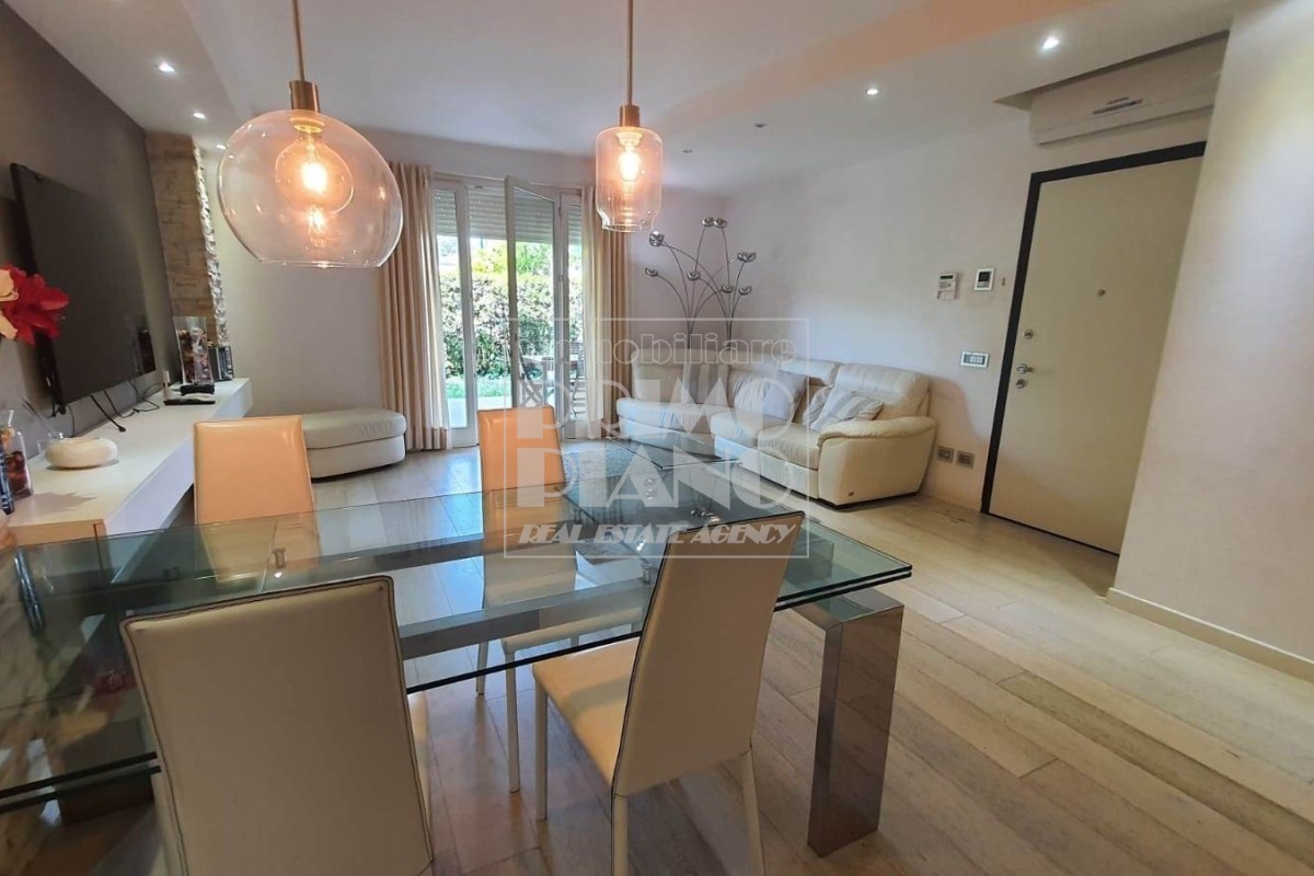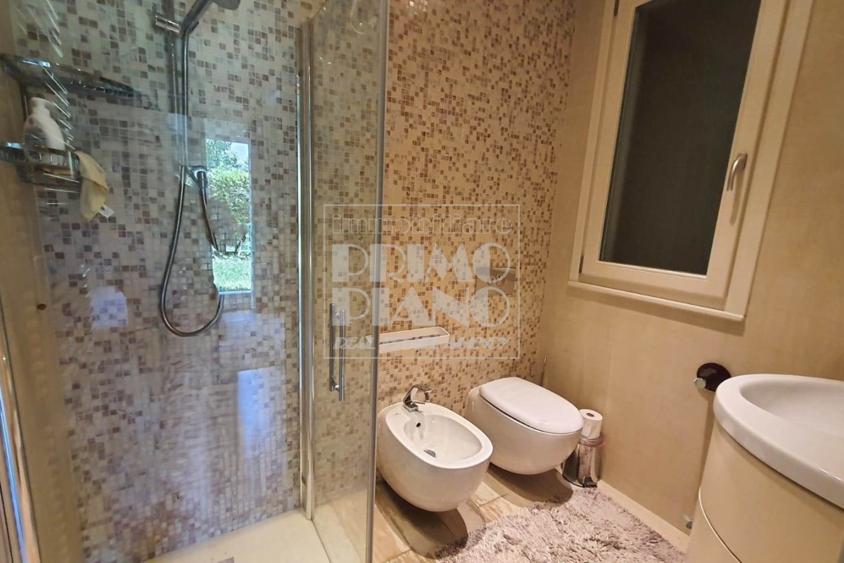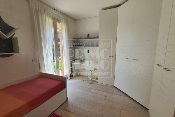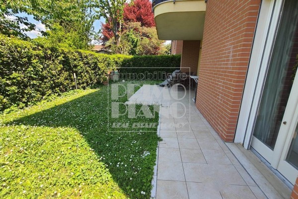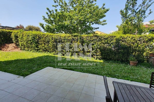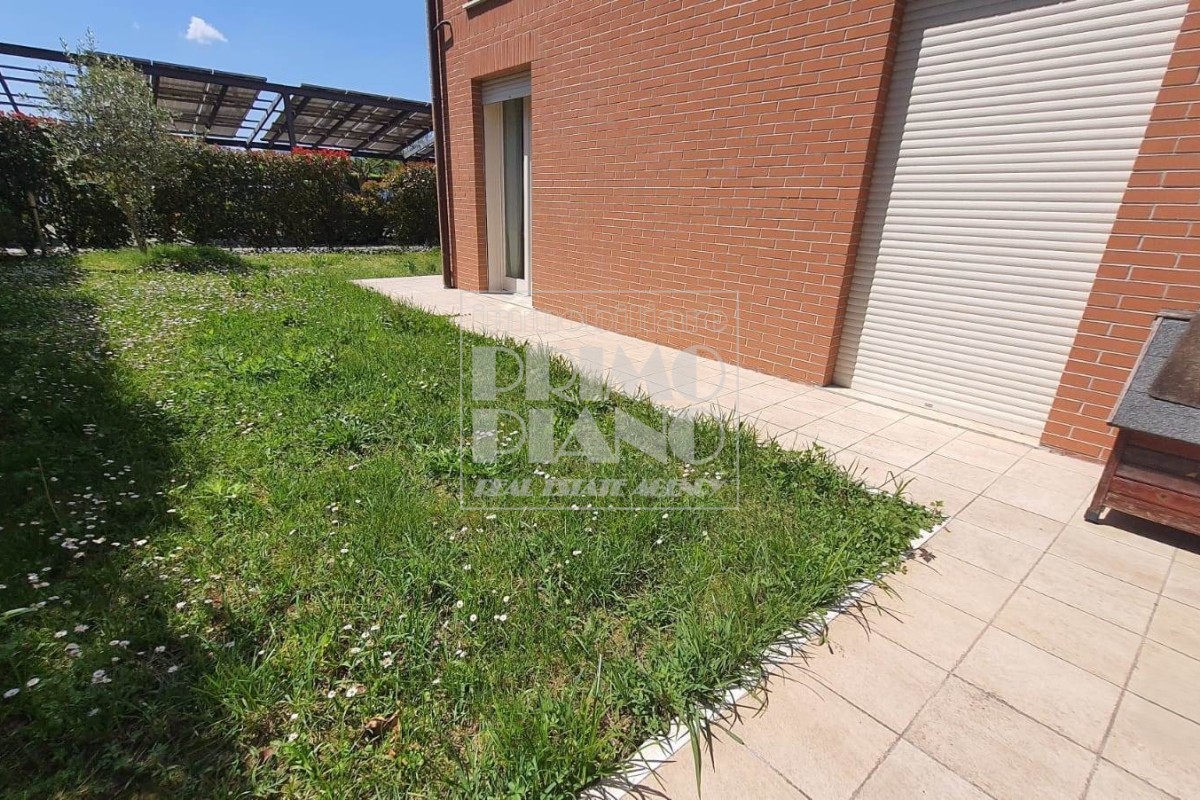 Corredato dal giardino privato di circa 300 mq. sui tre lati, grande garage anche per due auto, due posti auto di fronte al garage oltre ad un posto auto esterno, coperto, assegnato in parcheggio condominiale.