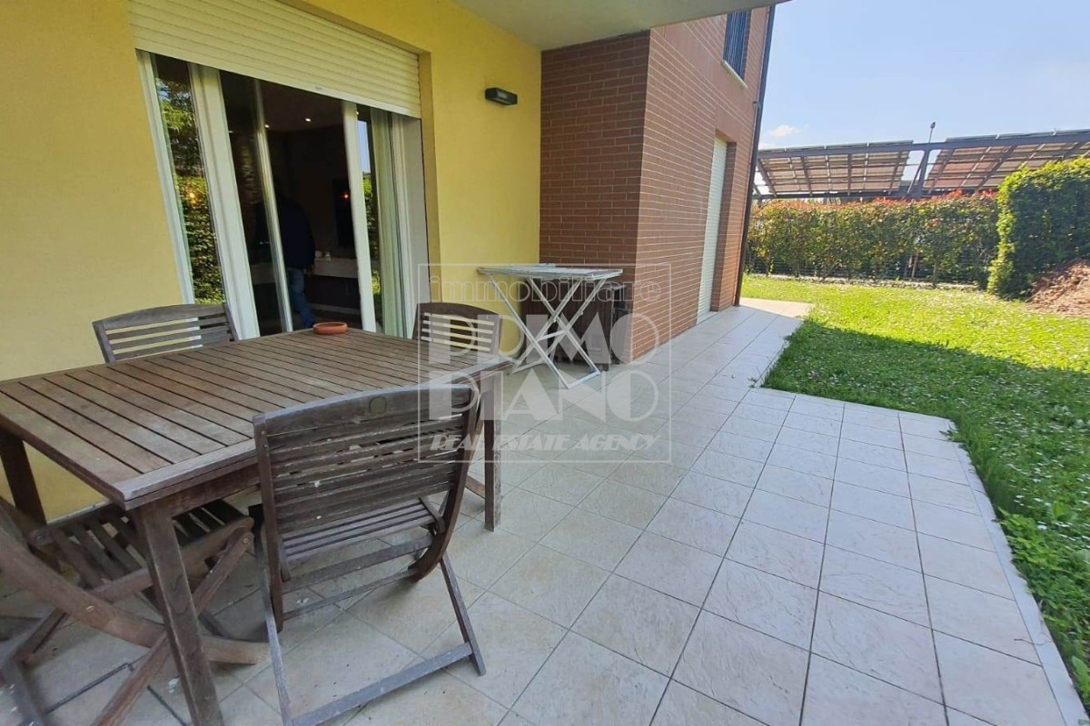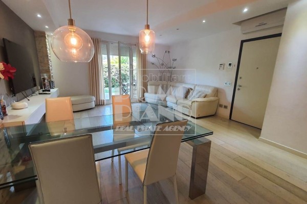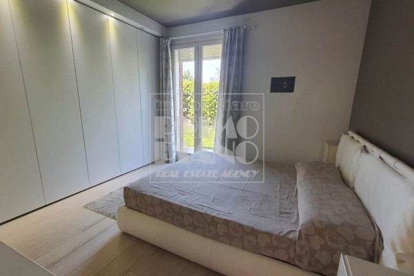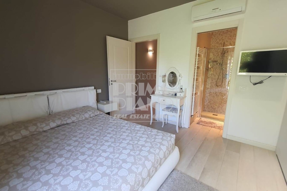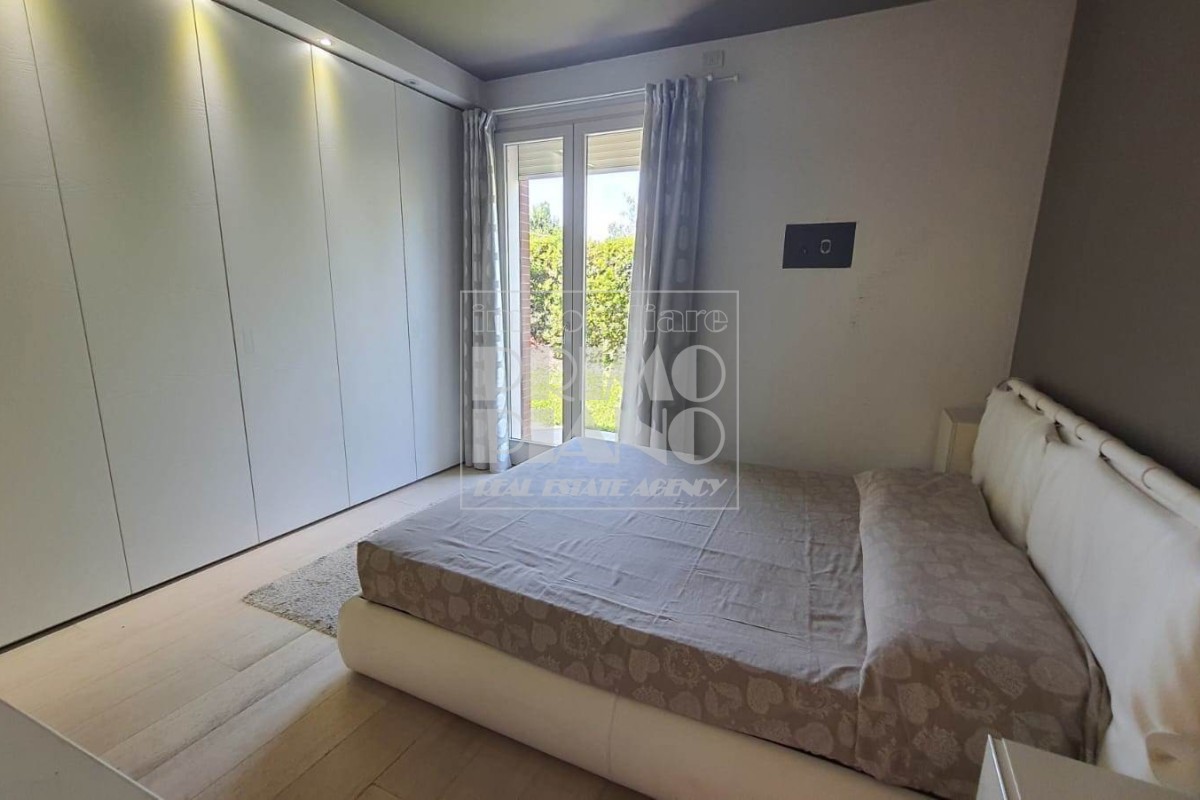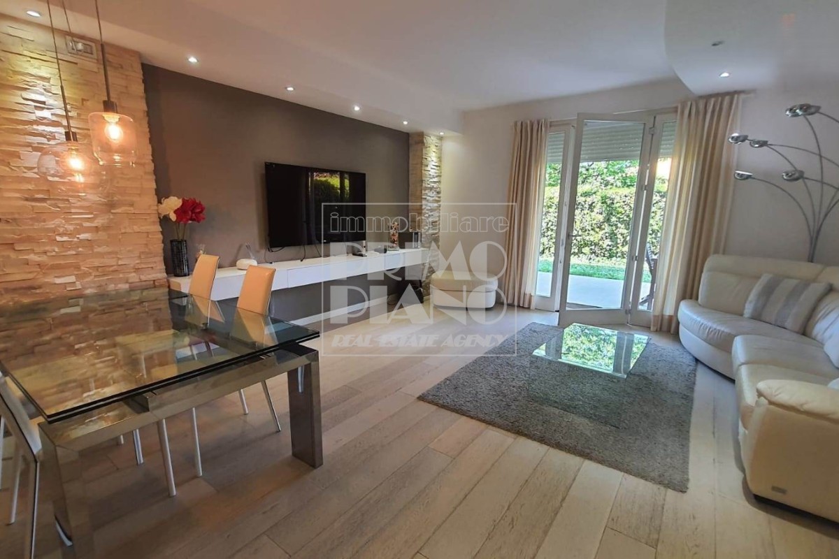 Corredato dal giardino privato di circa 300 mq. sui tre lati, grande garage anche per due auto, due posti auto di fronte al garage oltre ad un posto auto esterno, coperto, assegnato in parcheggio condominiale.
