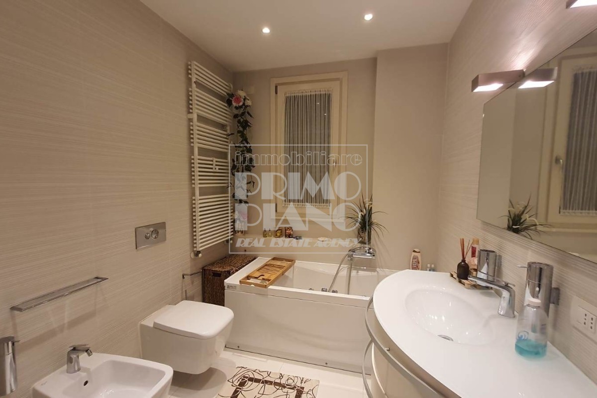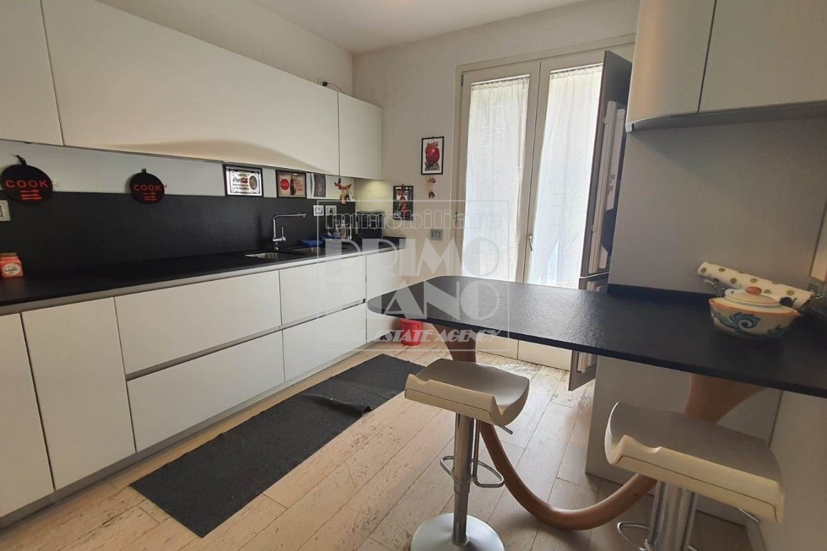 L'appartamento è dotato di ogni comfort: riscaldamento a pavimento, aria condizionata, tapparelle elettriche, ascensore che collega al piano interrato, dotato di pannelli solari, pannelli fotovoltaici e induzione per cucinare. Nel prezzo è compresa la cucina.