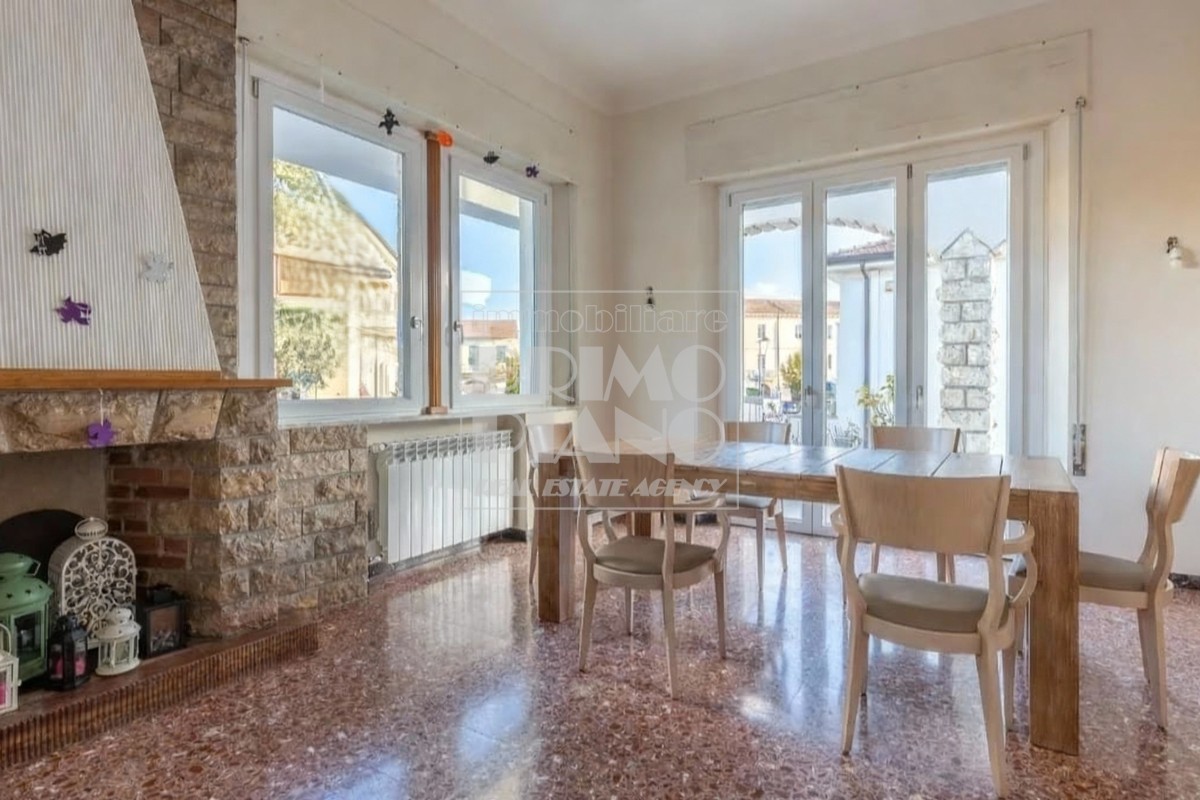 La villa si sviluppa su due livelli. Il piano principale ospita un elegante e spazioso soggiorno, caratterizzato da ampie vetrate che collegano armoniosamente gli interni alla terrazza e al giardino, creando un piacevole dialogo tra spazio interno ed esterno. La zona notte comprende quattro camere da letto e due bagni, ben distribuiti e ideali per una famiglia o per chi desidera ambienti funzionali e ben organizzati.