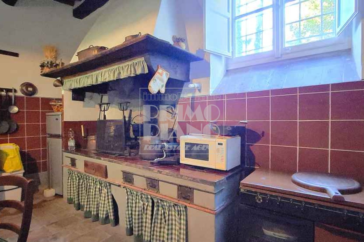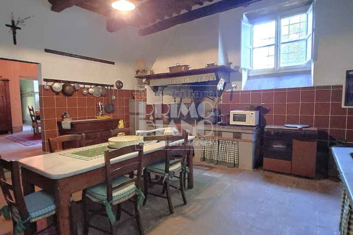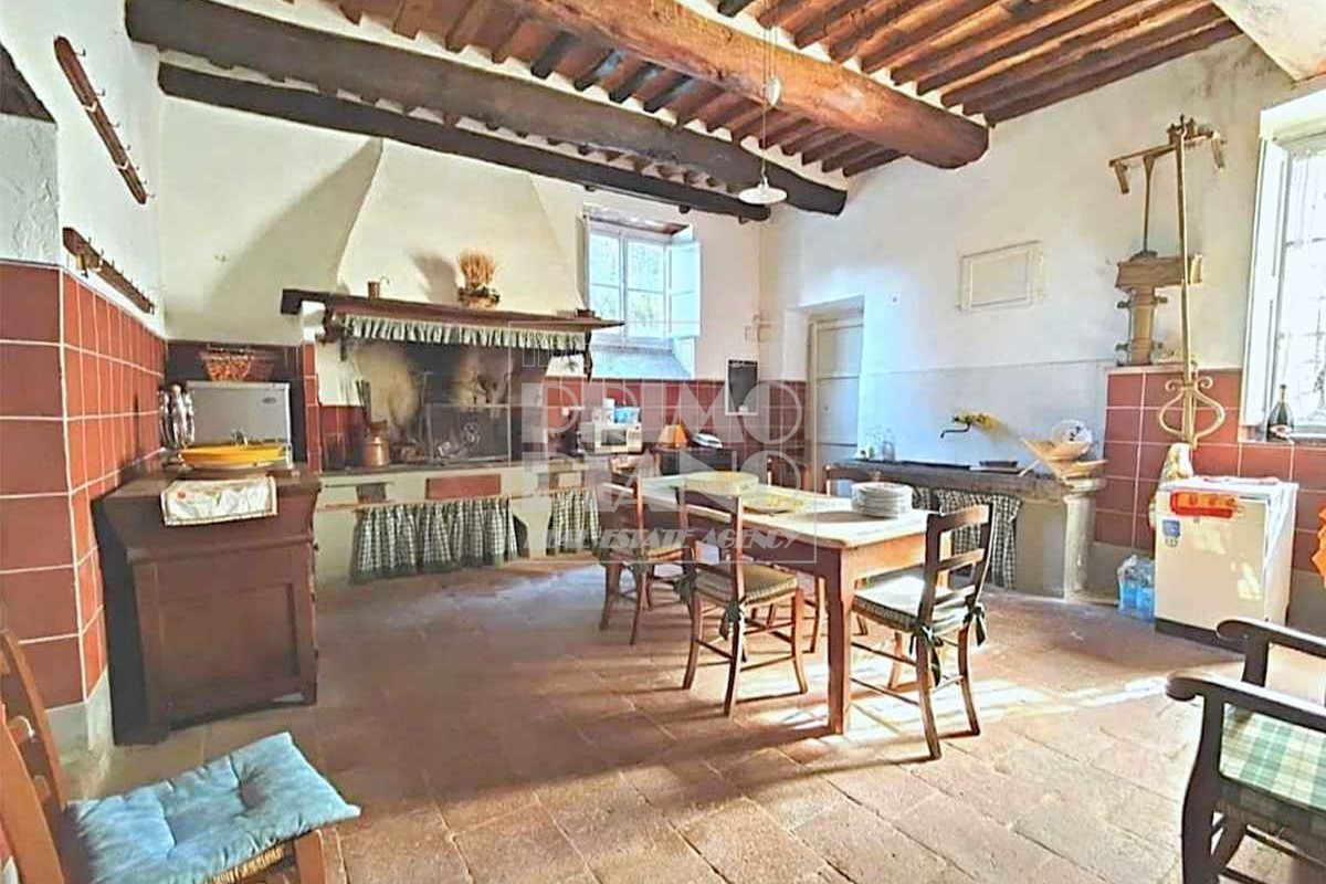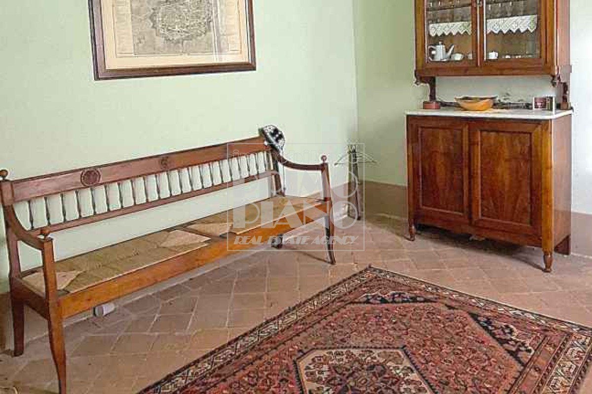 Una casa colonica di circa 470 mq su due livelli, in parte adibita ad uso agricolo e in parte residenziale, con un appartamento composto da soggiorno con camino, cucina, quattro camere e un bagno.