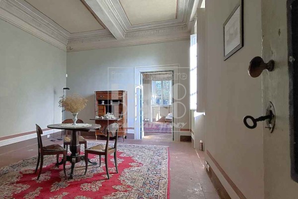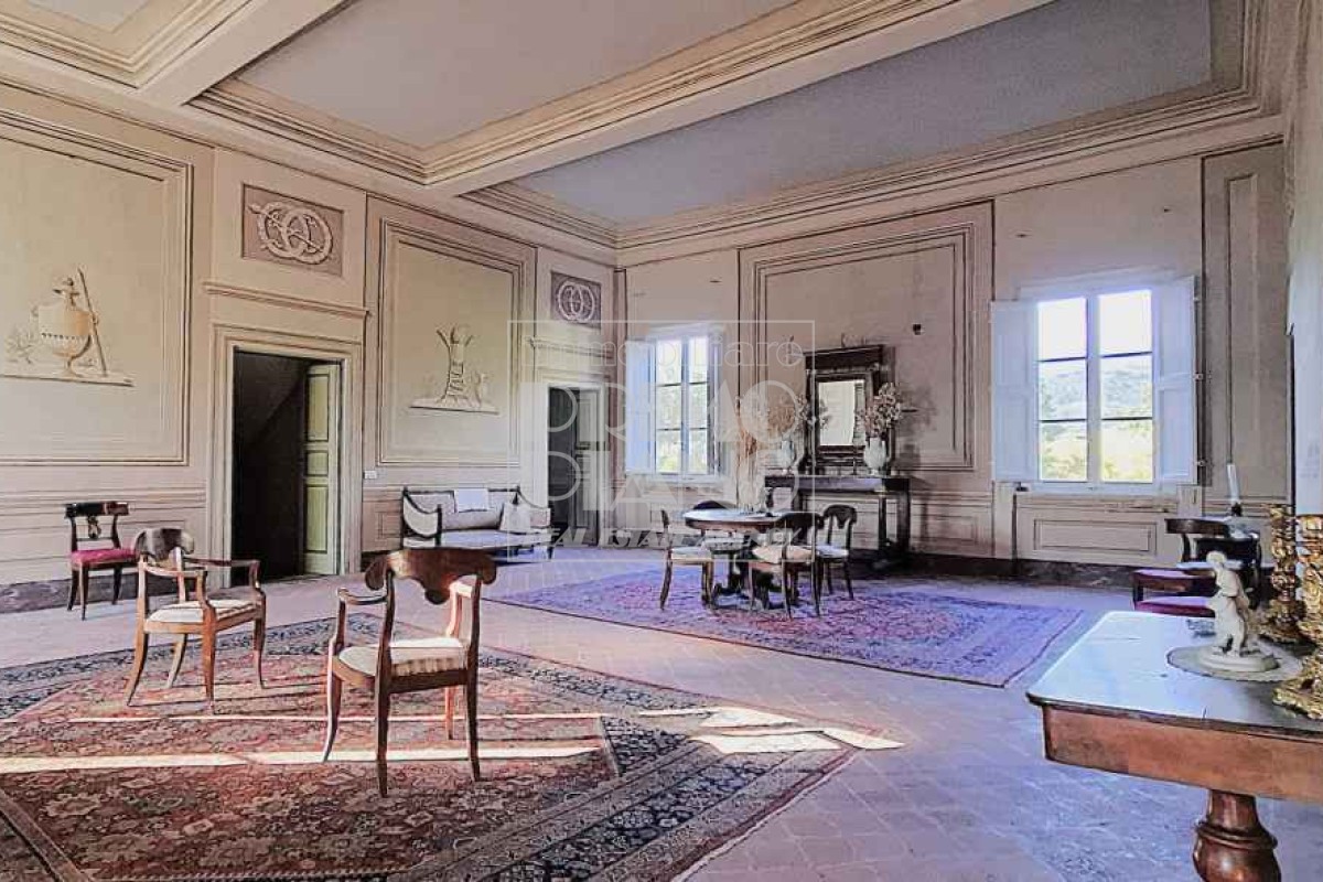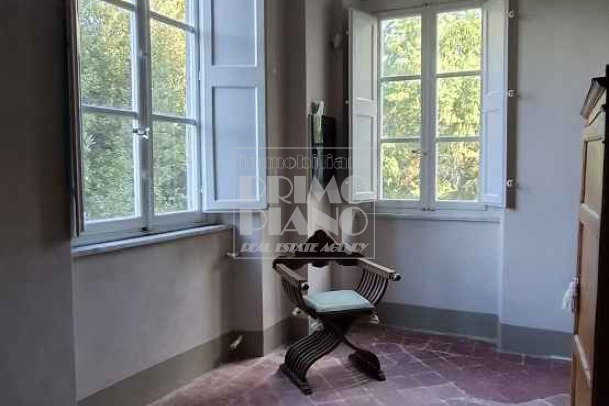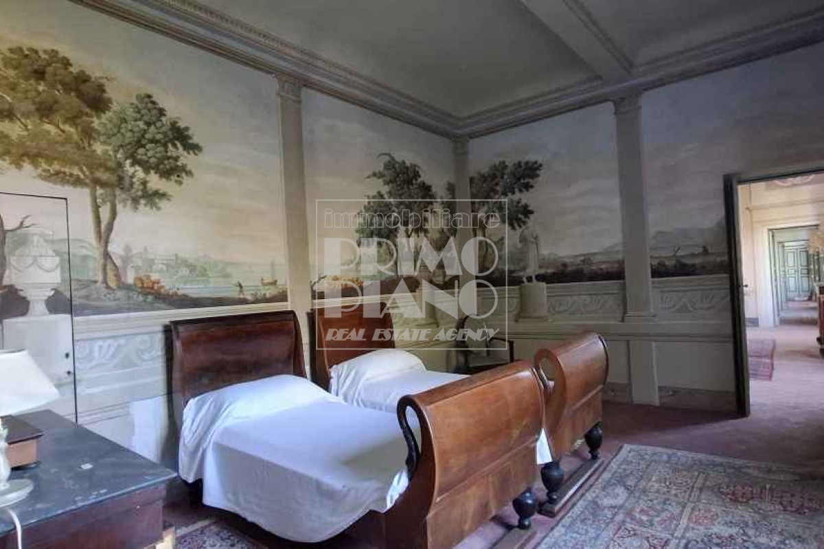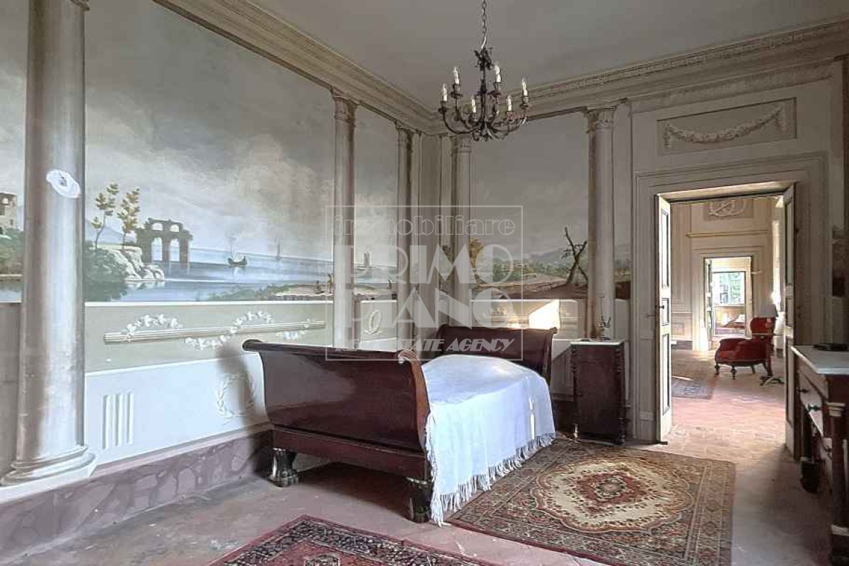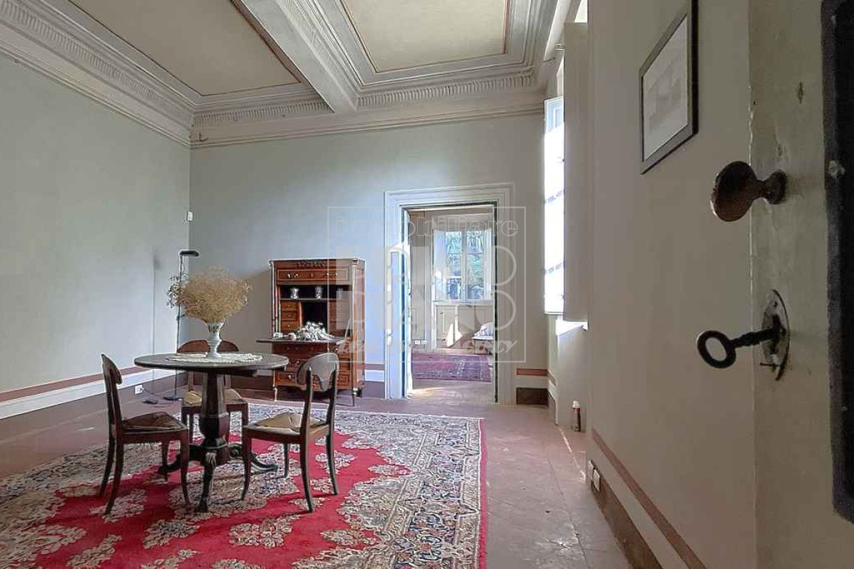 Il primo piano ospita un maestoso salone di rappresentanza, una suite padronale con salotto, camera e bagno, oltre a ulteriori camere matrimoniali, studi e bagni. Nella parte ovest, un ampliamento ottocentesco accoglie un’elegante suite con bagno privato e ambienti di servizio.