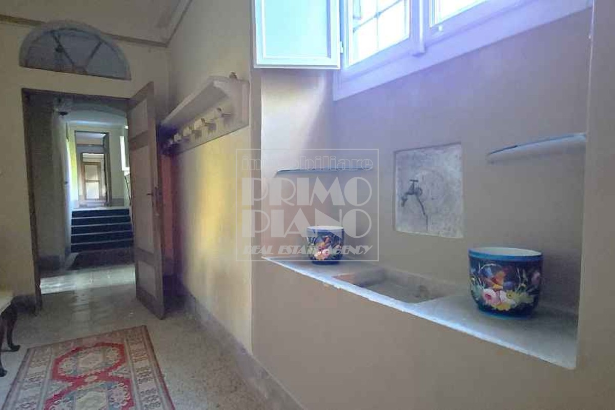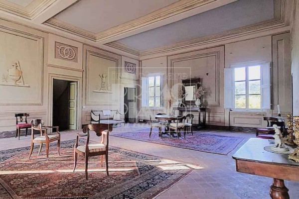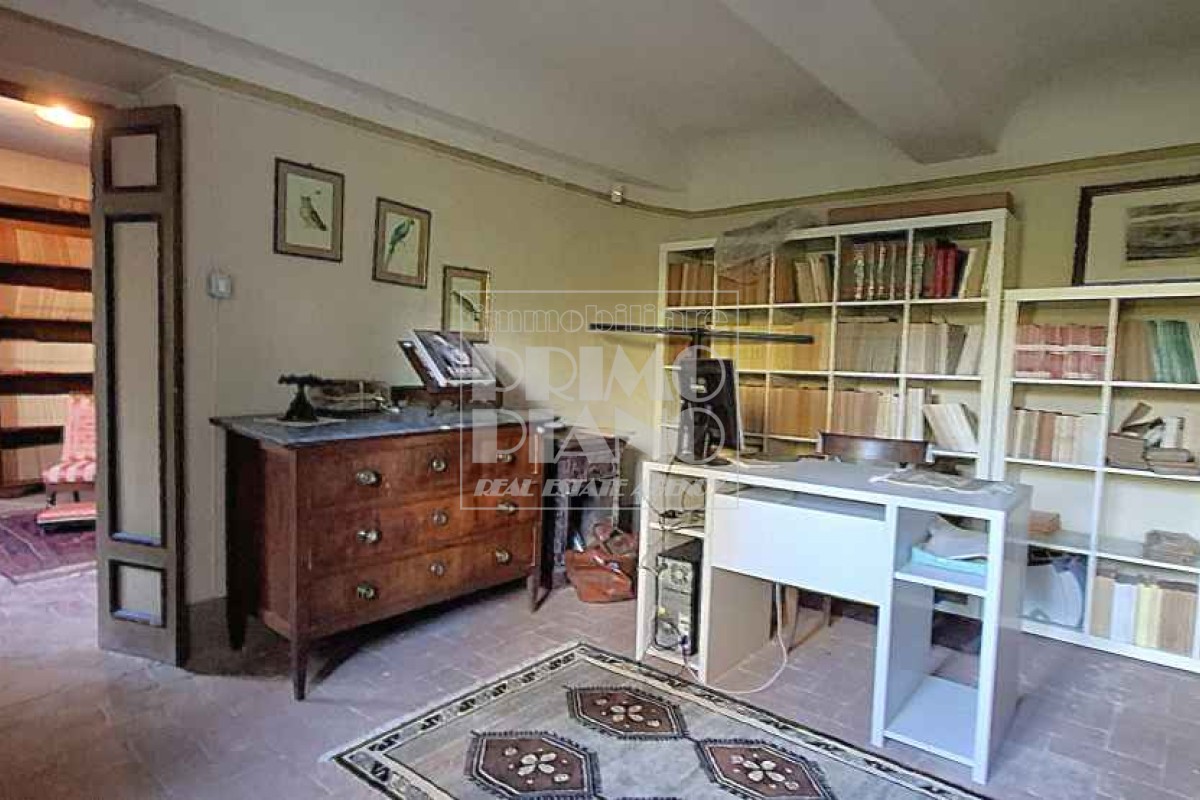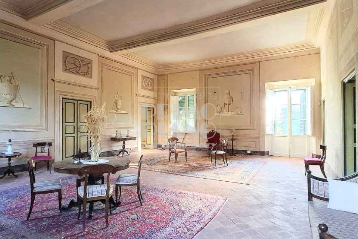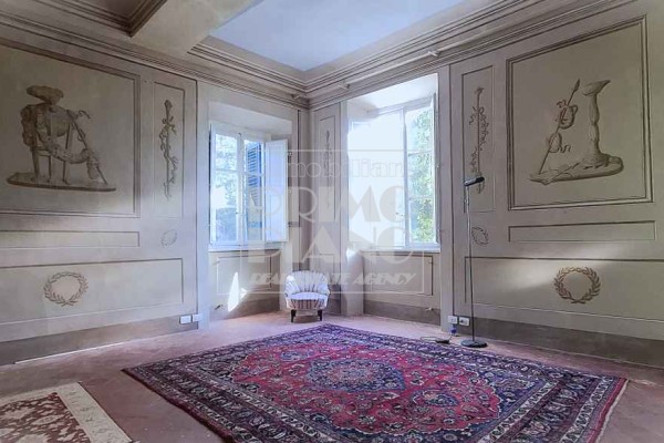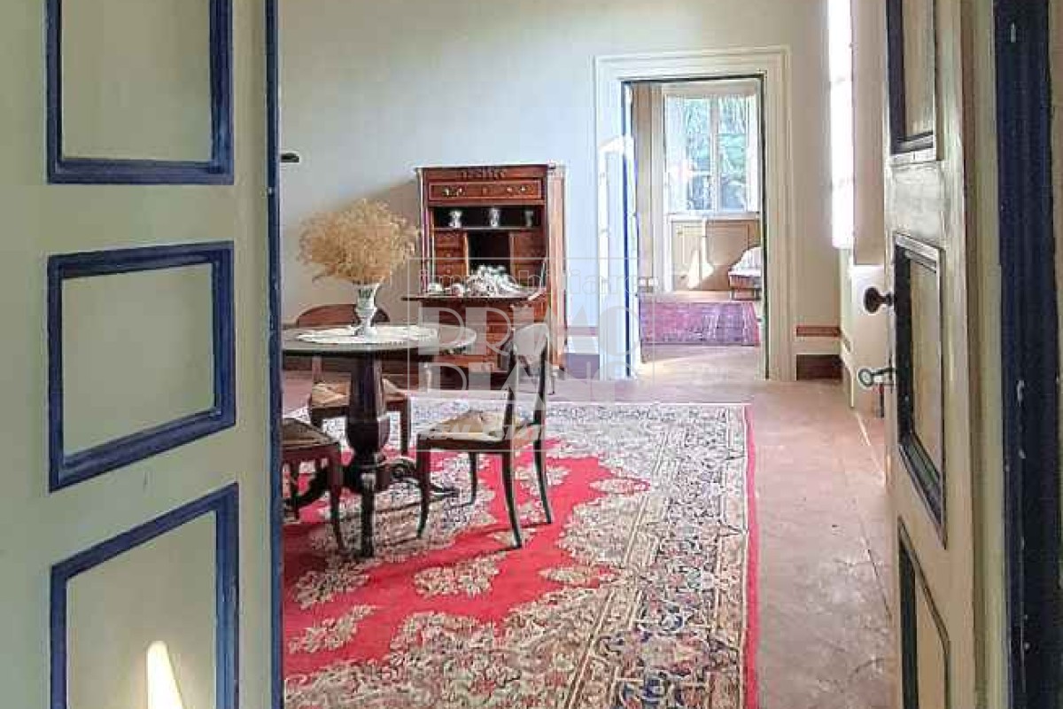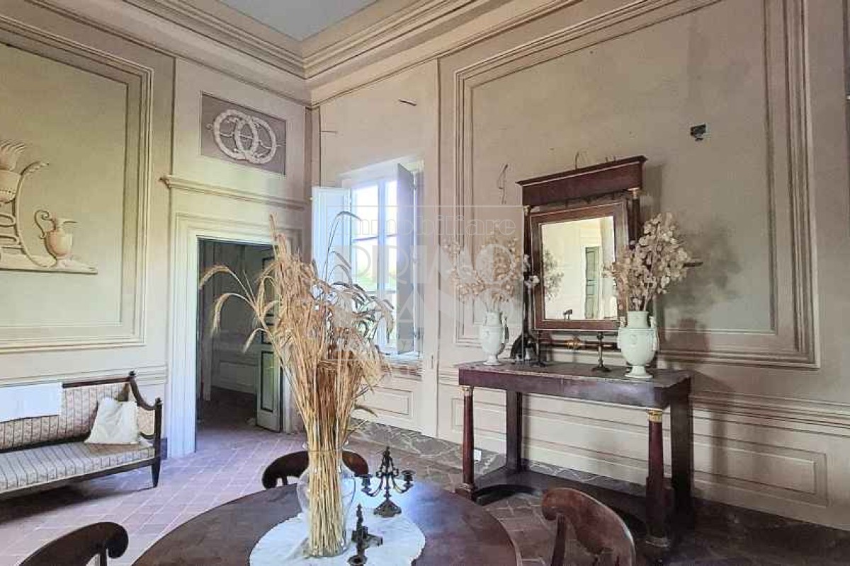Il primo piano ospita un maestoso salone di rappresentanza, una suite padronale con salotto, camera e bagno, oltre a ulteriori camere matrimoniali, studi e bagni. Nella parte ovest, un ampliamento ottocentesco accoglie un’elegante suite con bagno privato e ambienti di servizio.