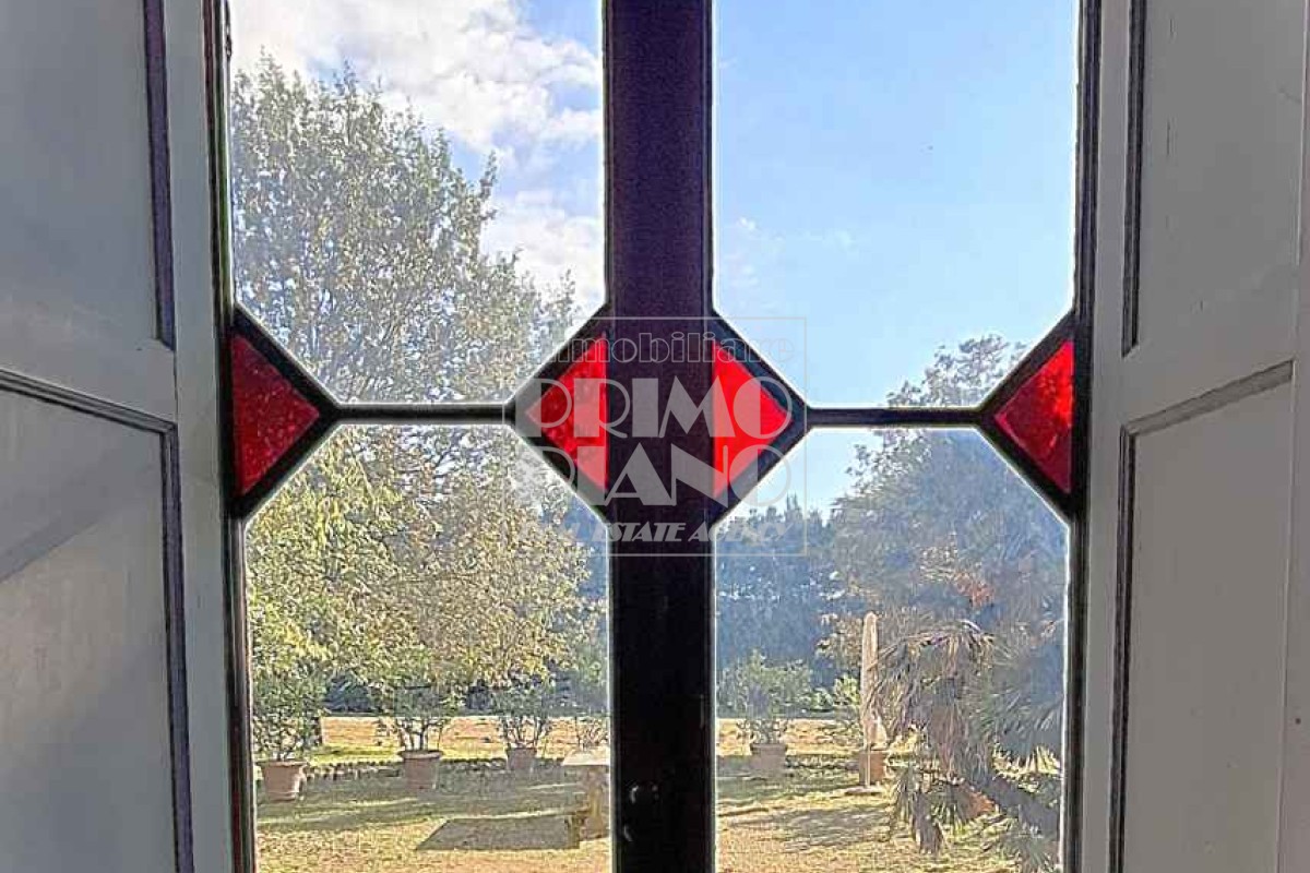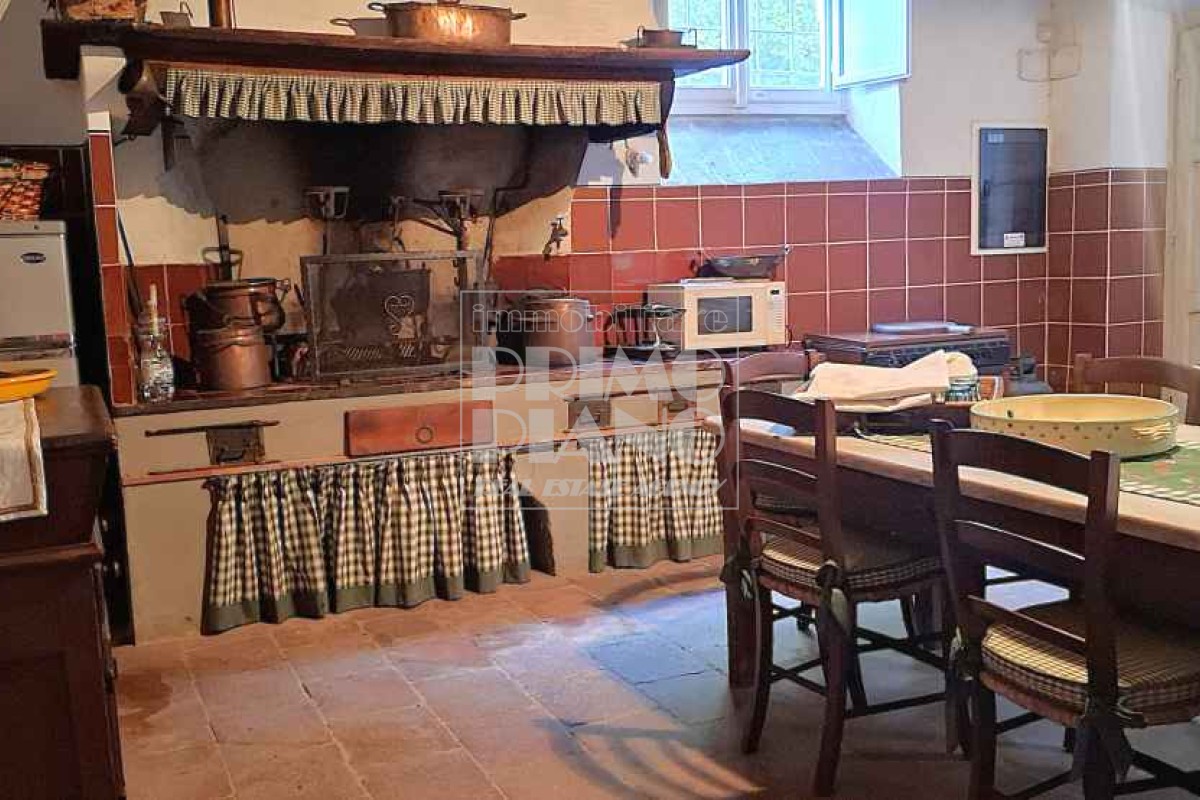 Al piano terra si trovano un grande salone affrescato con accesso diretto al parco, due sale laterali, una biblioteca, uno studio, un oratorio, la sala da pranzo e un’ampia cucina con forno a legna.